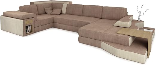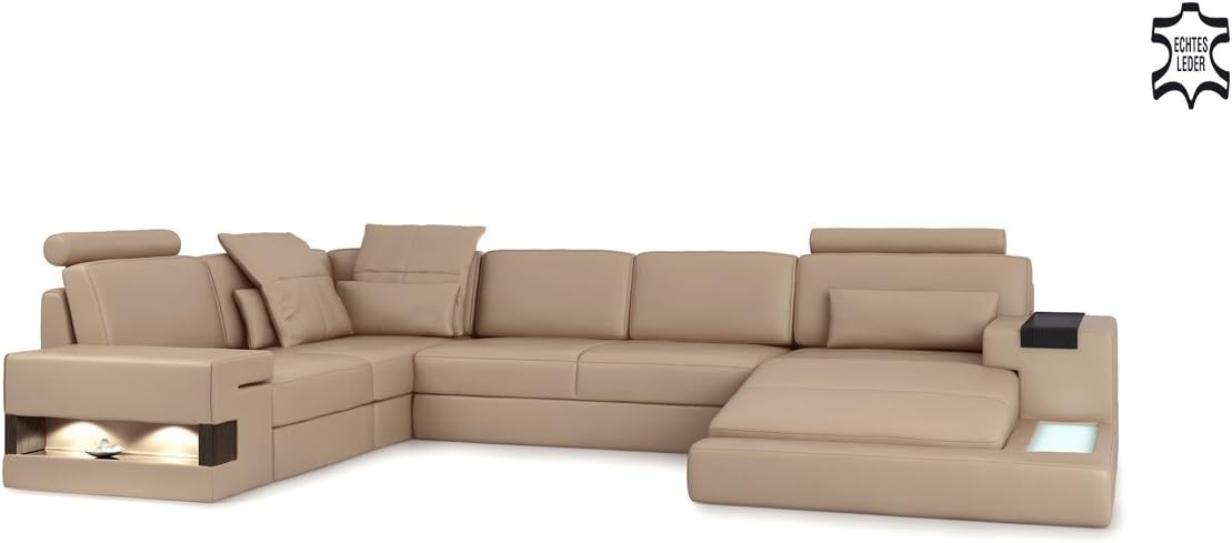 Bullhoff By Giovanni Capellini Xxl Wohnlandschaft U Form Stoff Leder Sandbeige Braun Designsofa Sofa Couch Stoff Ecksofa Mit Led Licht Beleuchtung Imola Amazon De Kuche Haushalt