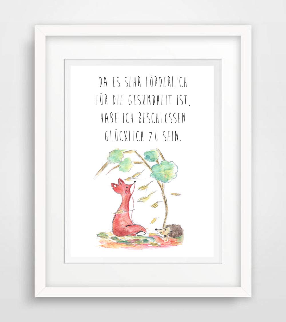 Da Es Sehr Forderlich Fur Die Gesundheit Ist Habe Ich Beschlossen Glucklich Zu Sein Spruch Leben Liebe Spruche Fine Art Print Poster Kunstdruck Plakat Modern Ungerahmt Din A 4 Deko Wand