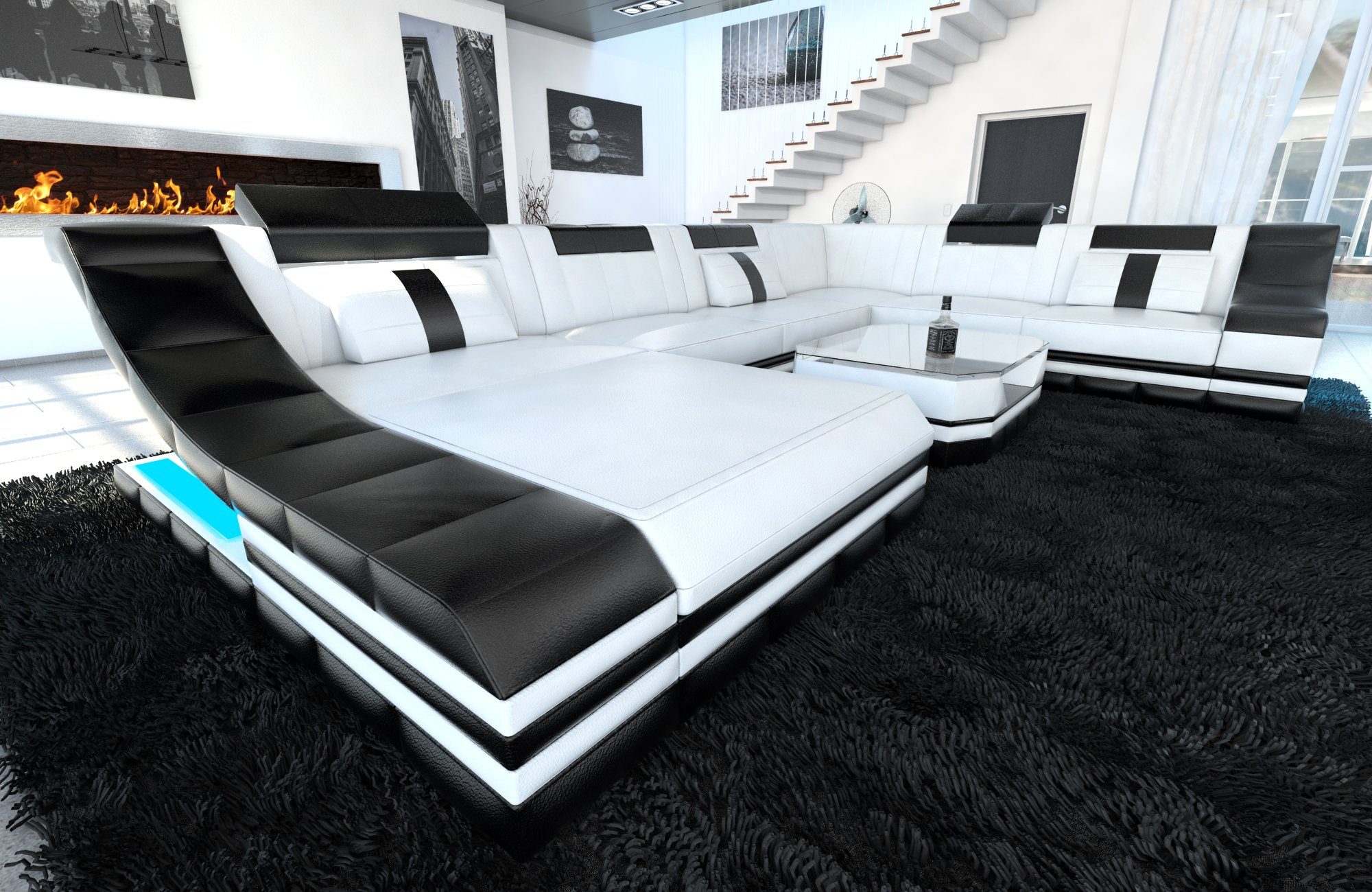 Bullhoff By Giovanni Capellini Wohnlandschaft Xxl Leder U Form Weiss Schwarz Foggia Amazon De Kuche Haushalt