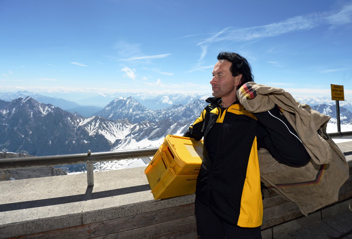 Dpdhl Pressestelle Sud On Twitter Arbeiten Aussicht Geniessen Vom Hochstem Punkt Unser Postbote Auf Der Zugspitze Heute Abend 18 Uhr Muenchentv Https T Co Yoawr7wbho
