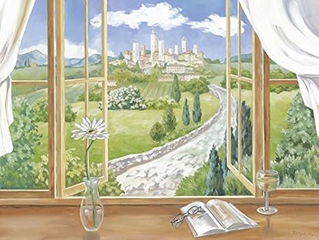 Artland Original Olgemalde Unikat Auf Leinwand Von Hand Gemalt Auf Holz Rahmen Gespannt Tanja Kowak Fenster Zur Toskana Landschaften Fensterblick Italien Malerei Grun 70 X 90 X 2 8 Cm A0qh Amazon De Kuche